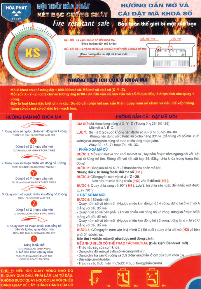 ( Chỉ áp dụng cho loại két chống cháy có khả năng đổi được mã két, Két an Toàn và két bảo mật không áp dụng vì không đổi được mã két và sẽ sử dụng mã két ngẫu nhiên kèm theo với từng két sắt khi NỘI THẤT HÒA PHÁT xuất xưởng )